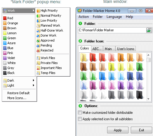 The software allows you to label folders with colour-coded and image-coded icons using a simple mouse click, making it easy to find and access them. Just right-click on the folder you want to label, choose a colour-coded icon from the menu, and instantly see the folder’s colour change.